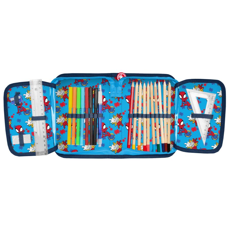KINDER FEDERTASCHE 22-TEILIG - SPIDEY - BLAU / BUNT