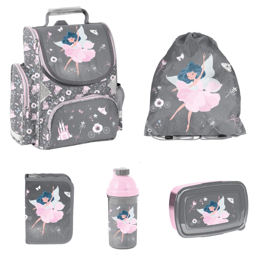 5-TEILIGES SCHULSET: SCHULRANZEN + TURNBEUTEL + UNBEFÜLLTE FEDERMAPPE + TRINKFLASCHE + BROTDOSE - BALLERINA