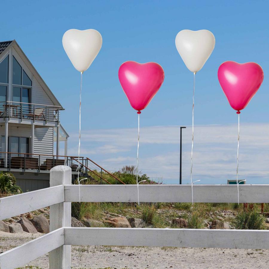 - Farbe/Menge: 25 weiße Herzluftballons + 25 fliederfarbene Herzluftballons