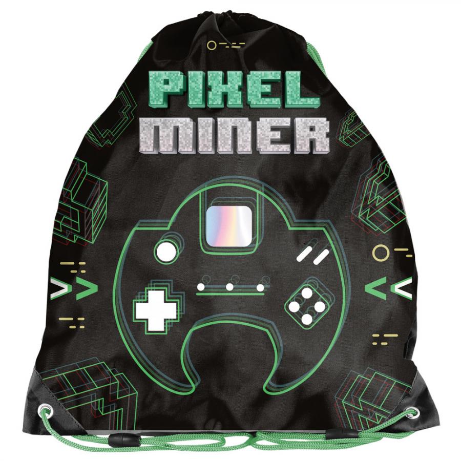 KINDER TURNBEUTEL / SPORTBEUTEL 36x32 cm - RETRO GAMING - SCHWARZ / GRÜN
