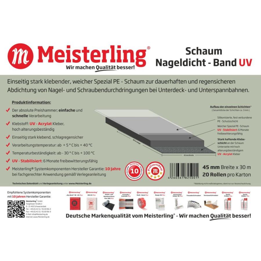 - MEISTERLING® SCHAUM NAGELDICHT-BAND UV - EINSEITIG STARK KLEBENDES UV-ACRYLAT 30 METER ROLLE, 45 MM BREITE