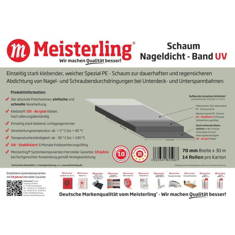 - MEISTERLING® SCHAUM NAGELDICHT-BAND UV - EINSEITIG STARK KLEBENDES UV-ACRYLAT 30 METER ROLLE, 70 MM BREITE
