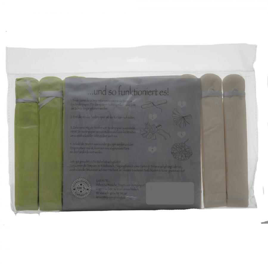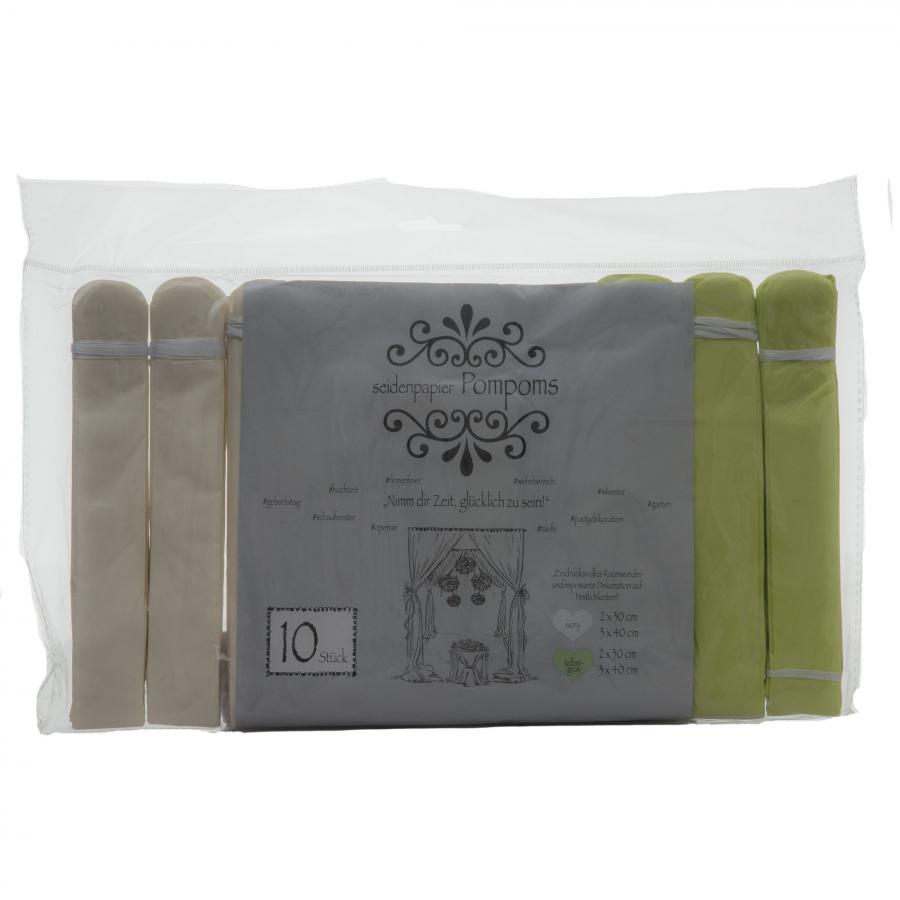 SET 10 STÜCK POMPONS 30 CM UND 40 CM AUS SEIDENPAPIER - ELFENBEIN - SALBEIGRÜN